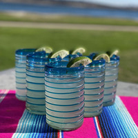 사용자 정의 14oz 손으로 날려 라이트 블루 소용돌이 줄무늬 유리 컵 무연 식품 등급 와인 현대 멕시코 칵테일 주스 수제